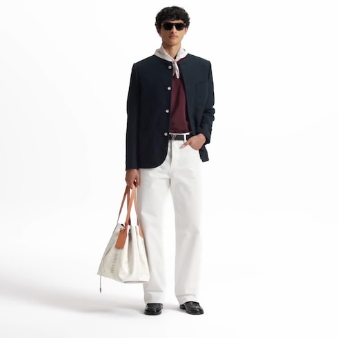 Là mảnh ghép lý tưởng cho trang phục thường nhật, mẫu quần Jean được may từ vải Denim Nhật Bản cao cấp trong gam màu trắng đậm chất hè. Dấu ấn thương hiệu được thể hiện qua đường khâu diễu màu trắng ngà tương phản, logo LV thêu trên túi sau, cùng miếng da Nubuck trên túi phụ và cạp quần.