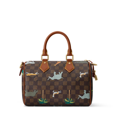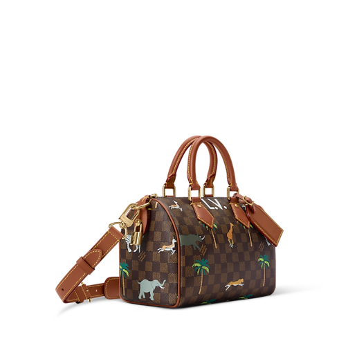 Là một mảnh ghép thuộc bộ sưu tập The Darjeeling Limited, mẫu túi Speedy 25 Bandoulière bằng chất liệu Damier Heritage Canvas thể hiện hình ảnh các loài động vật hoang dã đang lao mình qua những hàng cọ. Gam màu trầm giúp làm nổi bật họa tiết độc đáo, trong khi lớp lót bên trong bằng vải Cotton màu nâu được tô điểm với chi tiết trang trí tôn vinh mối liên kết giữa Maison và bộ phim mang tính biểu tượng.