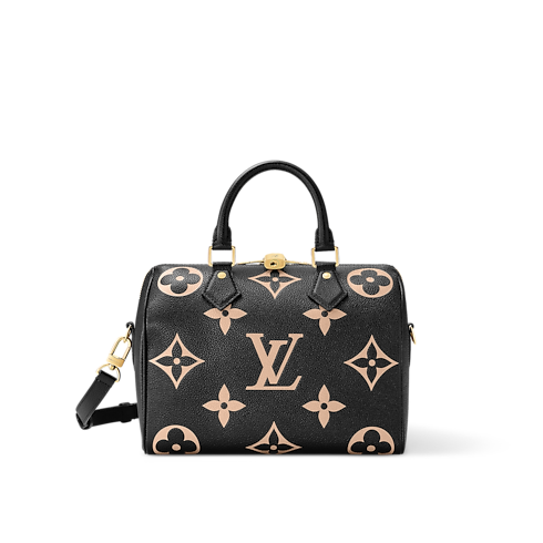 Túi Speedy Bandoulière 20 toát lên vẻ đẹp thời thượng với chất liệu da Monogram Empreinte hai tông màu, điểm xuyết logo LV và hoa văn Monogram màu kem. Kiểu dáng và quai xách tinh xảo được lấy cảm hứng từ dòng túi du lịch Speedy ra mắt vào thập niên 1930 của nhà mốt Pháp. Túi có thể đeo trên vai hoặc đeo chéo nhờ dây xích kết hợp dây da.
