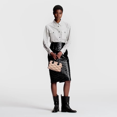 Túi Speedy 20 Bandoulière sang trọng và tinh xảo được chế tác thủ công từ da cừu màu be, nhấn nhá họa tiết Malletage trong gam màu đỏ đậm tương phản. Ngoài quai xách Toron, túi còn có dây đeo bằng da và dây xích dễ tháo rời để linh hoạt biến tấu theo nhiều kiểu. Chi tiết khóa kéo 2 chiều với ổ khóa màu vàng ánh kim hoàn thiện tổng thể trang nhã.