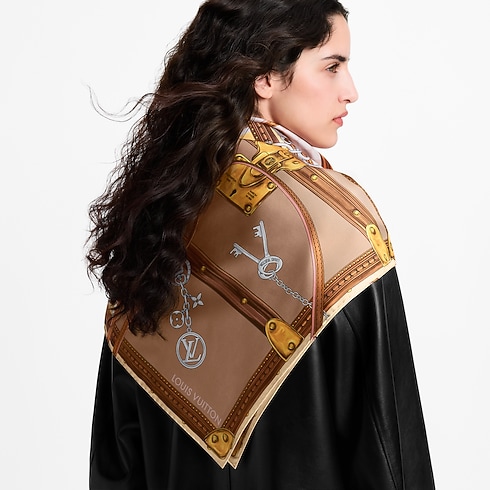 Khăn lụa vuông Strap And Trunk thời thượng và mang tinh thần viễn du được lấy cảm hứng từ những sáng tạo kinh điển trong kho lưu trữ của nhà mốt. Sản phẩm được làm từ lụa cao cấp, nổi bật với hình ảnh bốn chiếc rương được trang trí bằng các họa tiết đặc trưng như Monogram và Damier, kết hợp dây đeo bằng da và ổ khóa.