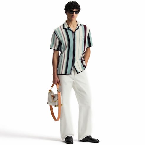 Mẫu áo sơ mi ngắn tay gây ấn tượng với họa tiết sọc kẻ kiểu đan móc trên nền vải Cotton hữu cơ dệt kim thoáng mát. Các chi tiết thêu óng ánh trước ngực và lưng áo, cùng hàng khuy hiệu ứng xà cừ tạo điểm nhấn sang trọng cho tổng thể. Có thể kết hợp mẫu áo này với quần ngắn đồng điệu để tạo nên bộ trang phục trẻ trung, thoải mái.