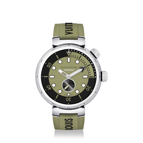 Tambour Street Diver là thiết kế đồng hồ đậm chất thể thao nhất của Louis Vuitton. Được chế tác tại Thụy Sĩ, sản phẩm là sự giao thoa giữa các tính năng của đồng hồ lặn truyền thống và tinh thần đột phá của nhà mốt Pháp. Gam màu xanh lá Urban tôn lên đường nét mạnh mẽ mà không kém phần sắc sảo của thiết kế. Với dây đeo bằng cao su cùng tông màu và dòng tên thương hiệu, phụ kiện sẽ tạo điểm nhấn năng động và thời thượng cho mọi bộ trang phục.