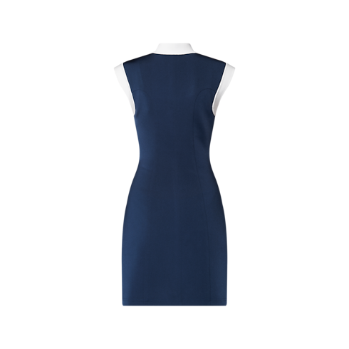 Mẫu đầm năng động được may từ vải Jersey kỹ thuật mềm mại và đứng phom, nổi bật với đường khâu duyên dáng giúp tôn lên kiểu dáng nữ tính. Sự kết hợp giữa các khối màu tương phản làm nổi bật cổ trụ tinh giản, tay áo lửng và khuy bấm, gợi nhớ đến phong cách thủy thủ. Trong khi đó, chiếc khuy trên cùng được điểm xuyết họa tiết hình mỏ neo tinh tế của bộ sưu tập Nautical.