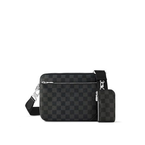 Túi Trio Messenger thời thượng được làm từ chất liệu Monogram Eclipse Canvas, tô điểm các chi tiết bằng da bò nổi bật. Thiết kế có ba phần dễ tách rời để sử dụng riêng, gồm một ngăn chính, một ngăn có khóa kéo ở phía trước và một ví đựng tiền xu nhỏ gọn trên quai đeo.