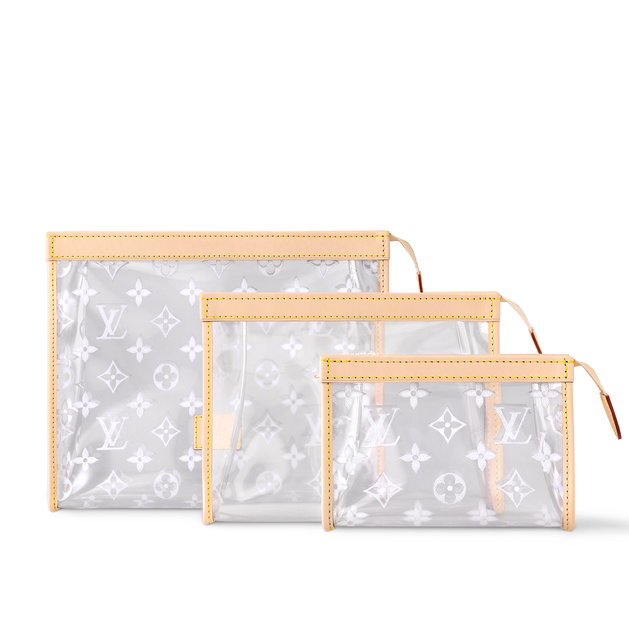 Bộ túi Trio Toilet Pouch gồm ba mẫu túi với các kích thước khác nhau được may từ chất liệu Monogram Canvas. Lớp lót bằng vải dễ giặt và có gam màu rực rỡ mang đến cho thiết kế vẻ thanh lịch mà không kém phần tiện dụng, trong khi chi tiết trang trí bằng kim loại màu Ruthenium hoàn thiện sản phẩm.