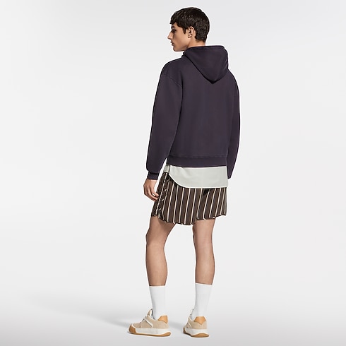 Thuộc bộ sưu tập Xuân-Hè 2026, mẫu áo Hoodie được may từ vải Cotton nhuộm màu Indigo ánh tím với hiệu ứng bạc màu, tô điểm nhãn da Louis Vuitton Paris màu nâu trước ngực bên trái. Là mảnh ghép tinh tế cho trang phục dạo phố cuối tuần, thiết kế còn có mũ trùm với đầu dây rút đính ngọc trai theo phong cách Dandy thời thượng.
