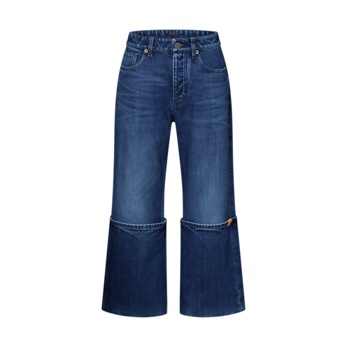 Sự biến tấu tinh tế về tỉ lệ mang đến làn gió mới cho mẫu quần Jean tối giản này. Được may từ vải Denim thô, thiết kế giữ nguyên nét thanh lịch cổ điển với hiệu ứng chuyển màu nhẹ nhàng và các đường chỉ nổi tương phản. Phom dáng cạp cao thoải mái với ống suông thời thượng trông nổi bật nhờ gấu quần XL bản lớn ấn tượng, với một gấu quần được điểm xuyết chi tiết mảnh da LV Circle sang trọng.