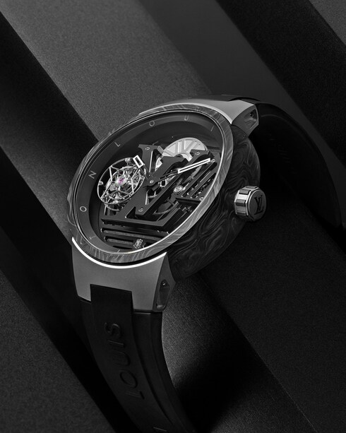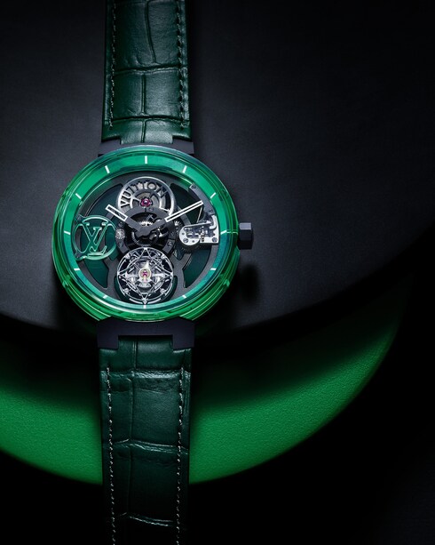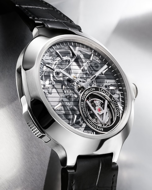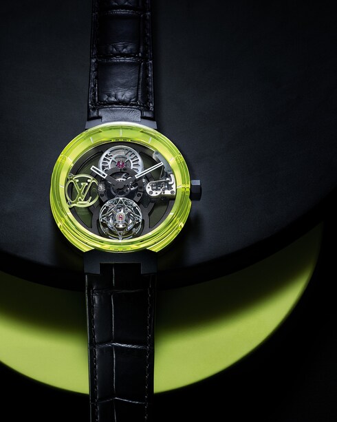 Ra mắt trong bộ sưu tập độc quyền hợp tác với kiến trúc sư nổi tiếng thế giới Frank Gehry, chiếc đồng hồ này sở hữu một trong những thiết kế mặt số có kỹ thuật phức tạp nhất mà La Fabrique du Temps Louis Vuitton từng chế tác. Cần hơn 250 giờ làm việc để chế tác mặt số, sản phẩm này có độ trong suốt tuyệt đối. Tái hiện kiến trúc tinh vi của Frank Gehry, cấu trúc thủy tinh này thu hút mọi ánh nhìn đến bộ chuyển động Flying Tourbillon Caliber với con dấu Poinçon de Genève.