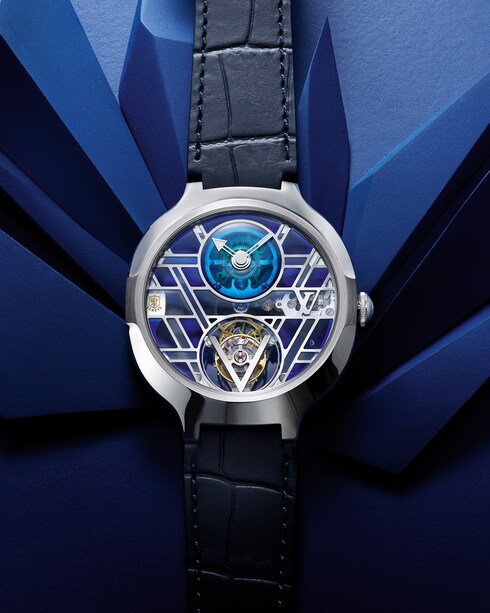 Tambour Moon Tourbillon Volant "Poinçon de Genève" là bộ sưu tập đồng hồ đầu tiên có vỏ đồng hồ bằng Sapphire, bên trên có tem Poinçon de Genève. Năm nay, bộ sưu tập này phong phú hơn với 2 mẫu đồng hồ mới được chế tác bởi các nghệ nhân tại Fabrique du Temps Louis Vuitton. Chỉ trong vài năm, họ đã trở thành bậc thầy của nghệ thuật cắt và nhuộm màu Sapphire tổng hợp