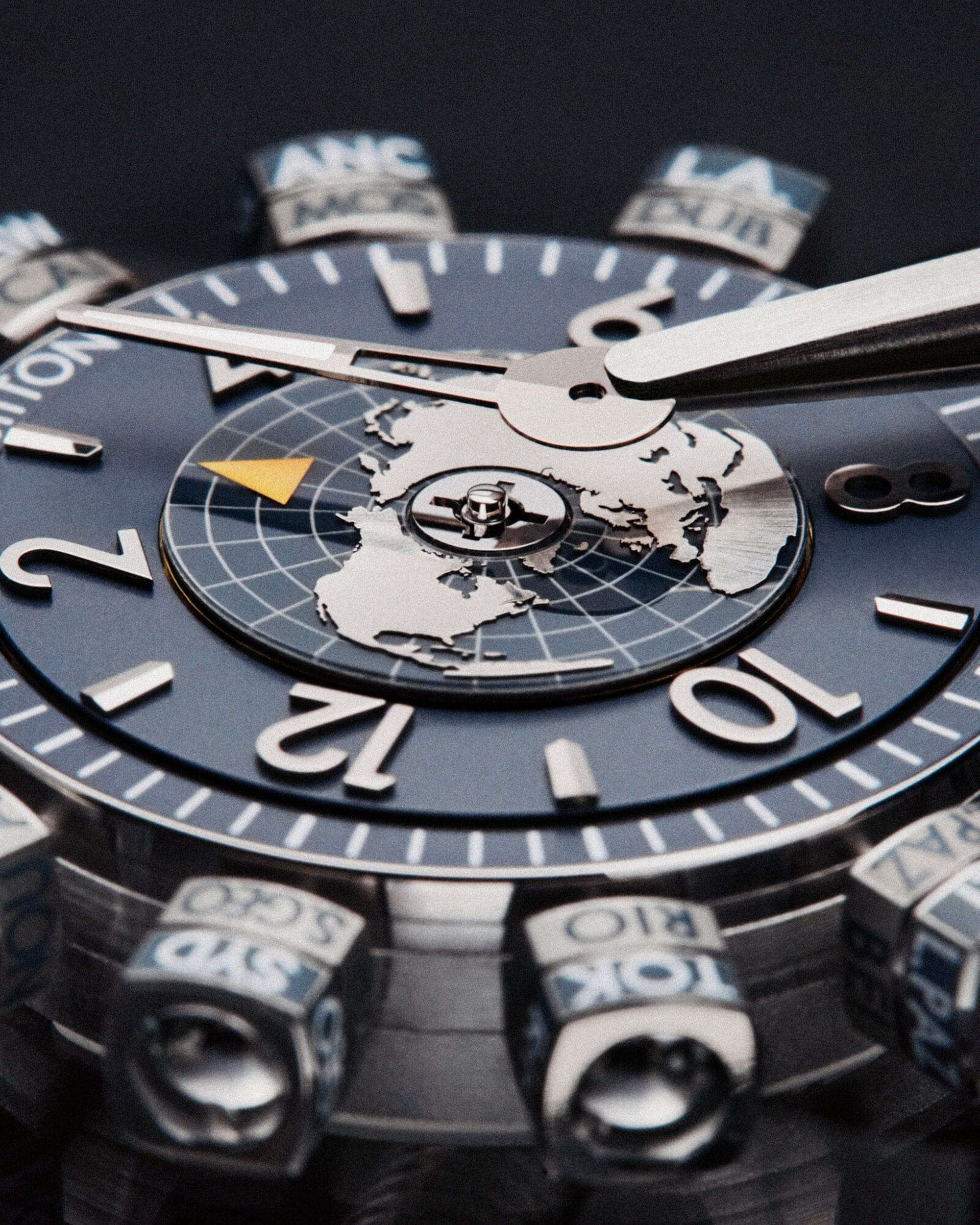 Gợi nhớ đến dòng Spin Time biểu tượng trình làng năm 2009 của Louis Vuitton, bộ sưu tập Tambour Taiko Spin Time ra mắt 6 mẫu đồng hồ phiên bản giới hạn, sở hữu bộ chuyển động độc quyền của thương hiệu. Bộ sưu tập này tái hiện những khối nhảy giờ 3D, lấy cảm hứng từ bảng giờ tàu và chuyến bay tại các nhà ga cũng như sân bay. Cứ mỗi 60 phút, 2 khối này sẽ xoay, trong đó một khối trở về vị trí nghỉ ngơi và khối còn lại xoay ngược về mặt trái được trang trí tinh xảo.