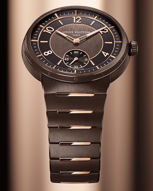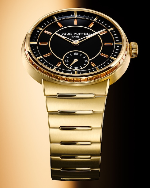 Được tô điểm bằng những lớp hoàn thiện tương phản, thiết kế Unisex của đồng hồ Tambour có dây đeo tích hợp lần đầu tiên xuất hiện tại Louis Vuitton, kết hợp hài hòa với phần vỏ thanh mảnh – mang đến sự thoải mái qua từng mắt xích cong mềm mại.
