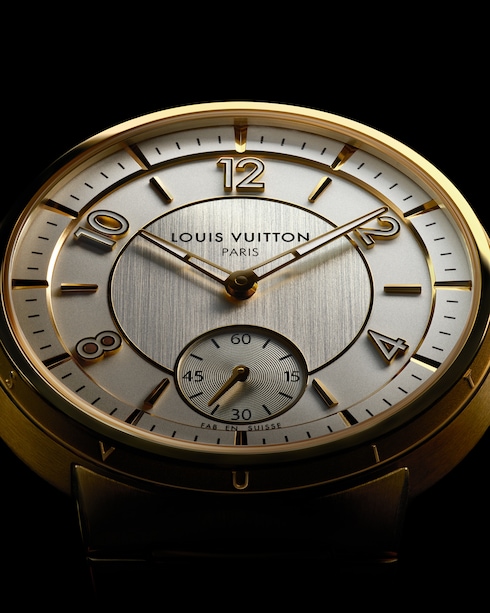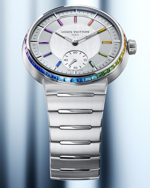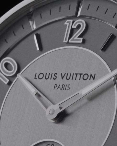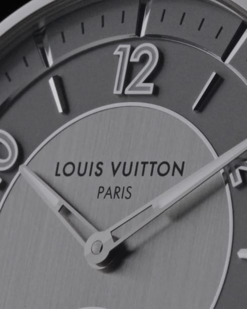 Kết hợp kỹ nghệ chế tác thủ công Thụy Sĩ và phong cách Paris sang trọng, phiên bản mới nhất của Tambour được trang trí bằng biểu tượng kép trên mặt số: Louis Vuitton Paris và Fab. en Suisse.
