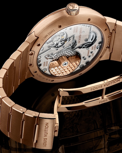 Thể hiện sứ mệnh theo đuổi sự tinh xảo hoàn mỹ, đồng hồ Tambour được trang bị cal. LFT023 – bộ chuyển động 3 kim độc quyền đầu tiên do La Fabrique du Temps Louis Vuitton thiết kế, thể hiện những nguyên tắc đặc trưng của Maison.